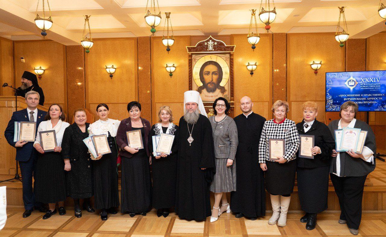 25 января 2026 г. в рамках работы XXXIV Международных Рождественских образовательных чтений на Круглом столе с участниками и победителями Конкурса «За нравственный подвиг учителя» Председатель Синодального отдела религиозного образования и катехизации митрополит Екатеринбургский Евгений (Кульберг) отметил дипломами и грамотами, в том числе от Министерства Просвещения Российской Федерации, педагогов Приморского района, вышедших на Всероссийский этап Конкурса: