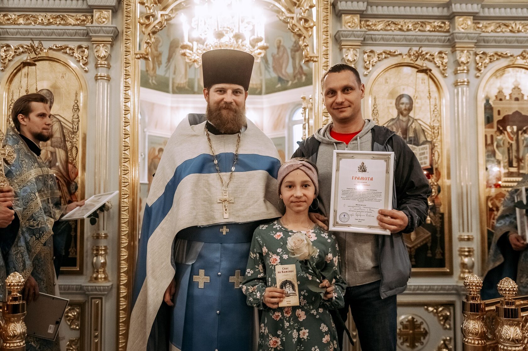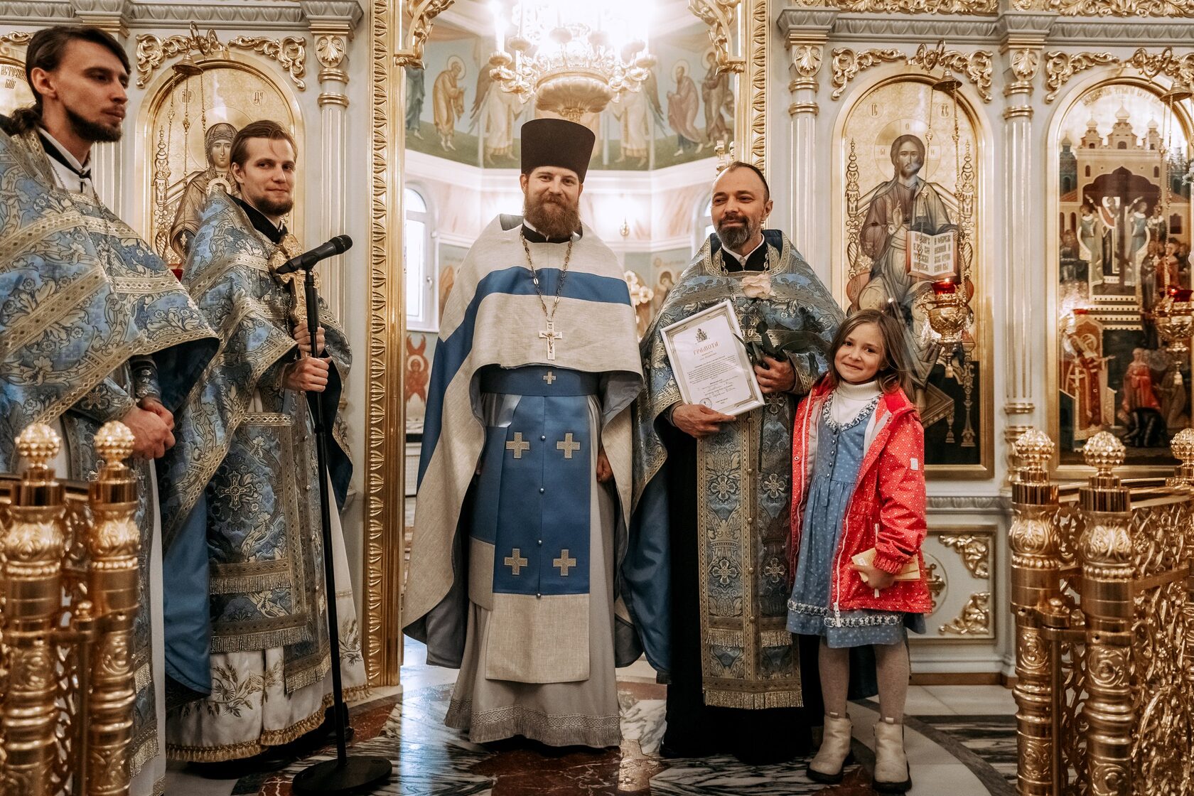 В праздник Рождества Пресвятой Богородицы после Божественной литургии настоятель храма иерей Серафим Дейнес вручил храмовые грамоты крепким приходским семьям, воспитывающим детей в христианской вере и являющимся постоянными прихожанами храма.