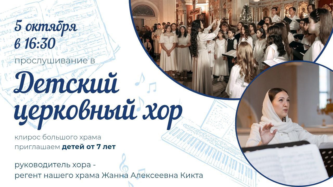 5 октября в 16:20 на клиросе большого храма состоится прослушивание в детский хор. К участию приглашаются дети от 7 лет. Прослушивание проведёт регент храма Спаса на Каменке Жанна Кикта.
